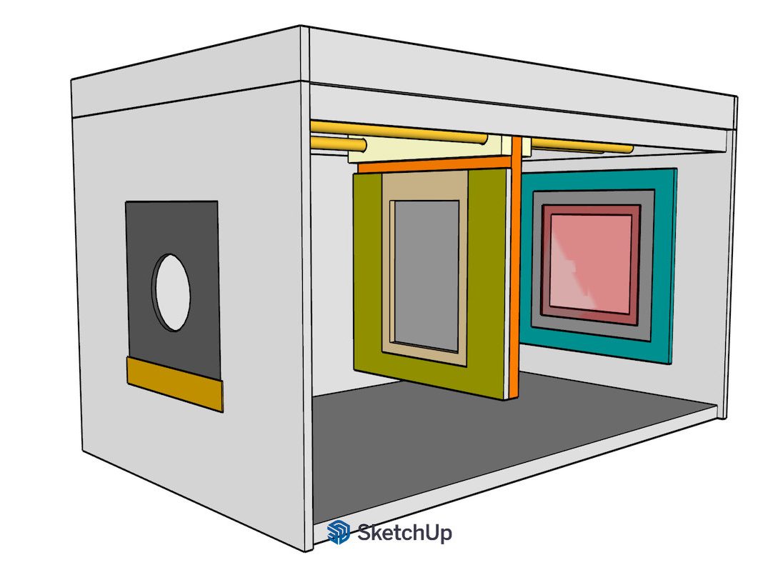 I’ve spent a few weeks researching, sketching in my notebook and reacquainting myself with SketchUp. I’m ready to start building the box itself; I think I have all the wood I’ll need. My aim is to be able to shoot up to 6×4 inch paper-negatives in portrait and landscape format.